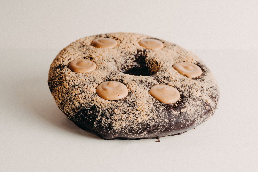 Chocolate Fudge Frosting, Digestive Biscuit Crumb, Salted Toffee Filling.
